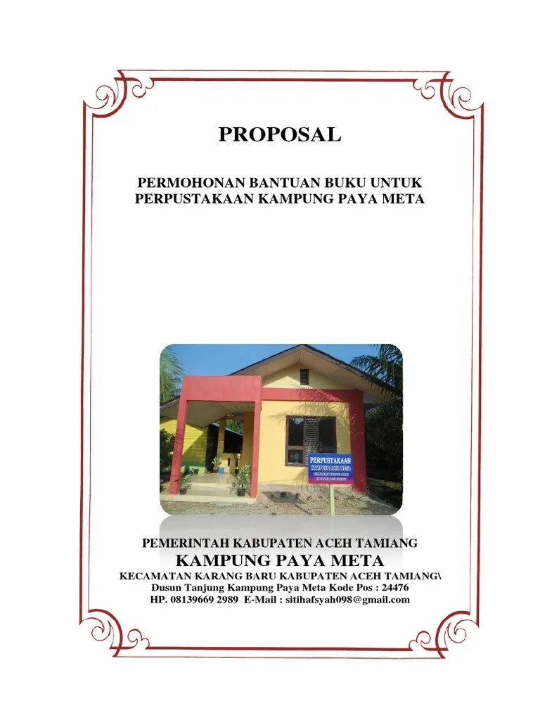 Proposal ini kami susun secara ringkas, berdasarkan buku panduan pelaksanaan subsidi pembangunan gedung perpustakaan dan tik untuk sekolah menengah pertama, yang diterbitkan oleh diektorat pembinaan sekolah menengah pertama, dirjen manajeman pendidikan dasar dan menengah, departemen pendidikan nasional tahun 2008. Apakah ada contoh proposal pengajuan buku ke perpustakaan nasional? Latar belakang keberadaan perpustakaan tidak dapat dipisahkan dari peradaban dan budaya umat manusia. Jul 10, 2018 · 1.3 tujuan pembuatan proposal. Apa yang diharapkan bagi perpustakaan sekolah?